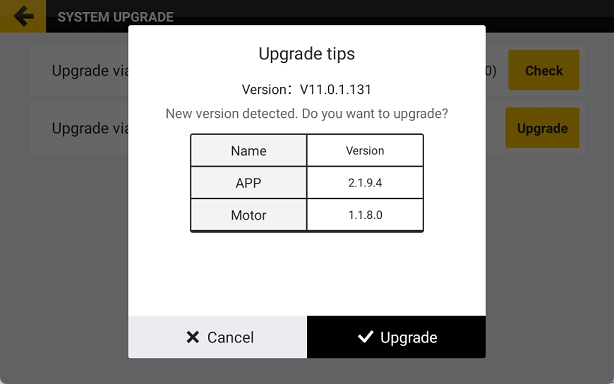After the FAE confirms the OTA update, go to Settings - System Settings, click Update , and the update prompt will appear.